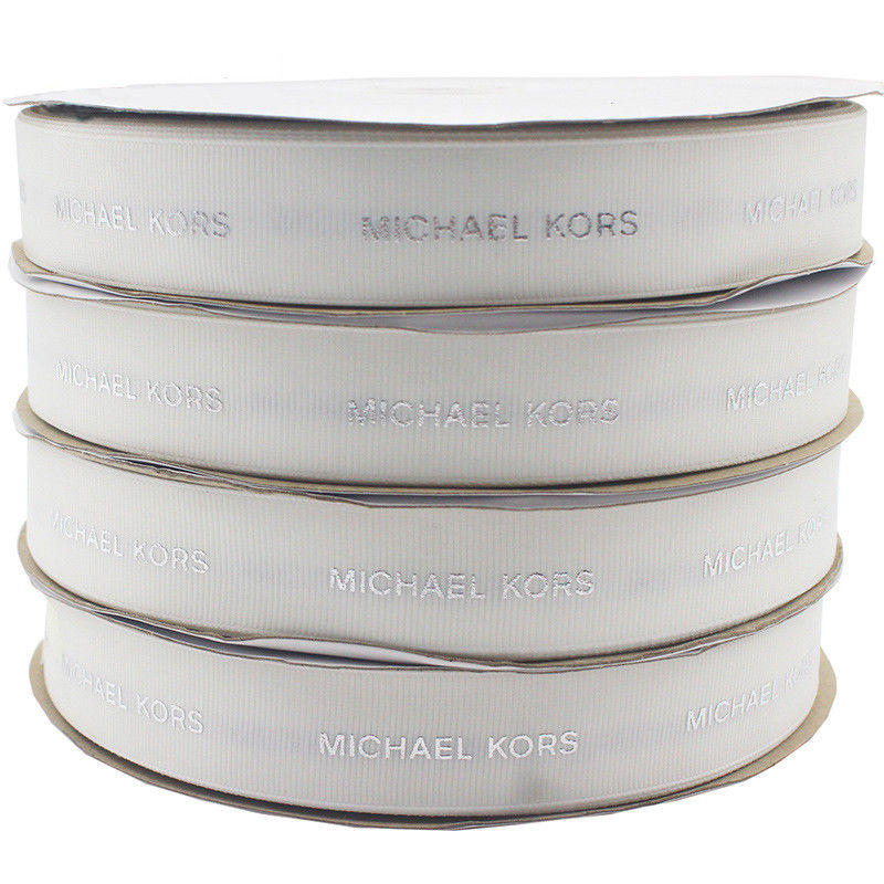 إرفع عبواتك معالشريط الكبير المخصص الذي يحتوي على شعار مطبع من ورق فضي.